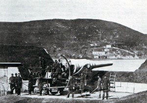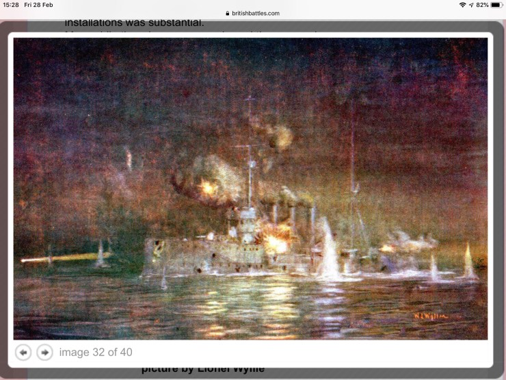 the fleet comes under fire from Turkish guns